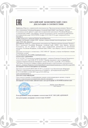 ЕВРАЗИЙСКИЙ ЭКОНОМИЧЕСКИЙ СОЮЗ ДЕКЛАРАЦИЯ О СООТВЕТСТВИИ
