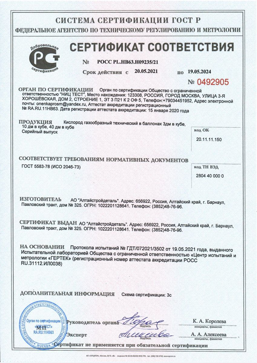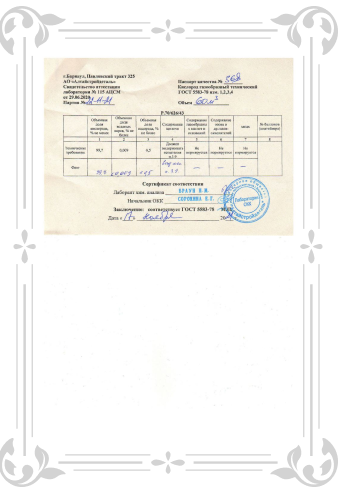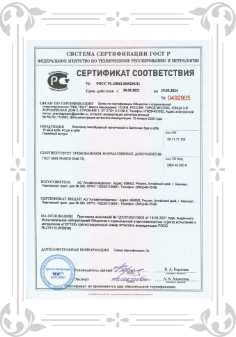 СЕРТИФИКАТ СООТВЕТСТВИЯ: КИСЛОРОД ГАЗООБРАЗНЫЙ ТЕХНИЧЕСКИЙ В БАЛЛОНАХ